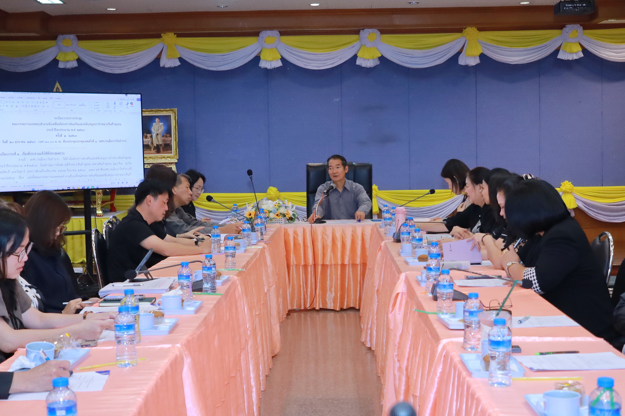 วันที่ 20 มกราคม 2569 เวลา 10.00 น. ณ ห้องประชุมประทุมเทพภักดี 1 เทศบาลเมืองวารินชำราบ นายบุญยง จินตนะกุล รองนายกเทศมนตรี ได้เป็นประธานในการประชุมคณะกรรมการติดตามและประเมินผลการดำเนินผลการดำเนินงานโครงการส่งเสริมและสนับสนุนการจำหน่ายสินค้าชุมชน ประจำปีงบประมาณ พ.ศ.2569 ครั้งที่ 2/2569 โดยดำเนินการระหว่างห้วงเดือนธันวาคม 2568 - กันยายน 2569 และตามคำสั่งเทศบาลเมืองวารินชำราบ ที่ 981/2568 เรื่อง แต่งตั้งคณะกรรมการและคณะทำงานขับเคลื่อนโครงการส่งเสริมและสนับสนุนการจำหน่ายสินค้าชุมชน ประจำปีงบประมาณ พ.ศ.2569 เพื่อติดตามและประเมินผลการดำเนินโครงการดังกล่าวเป็นไปด้วยความเรียบร้อย และรับทราบปัญหา อุปสรรค และข้อเสนอแนะ