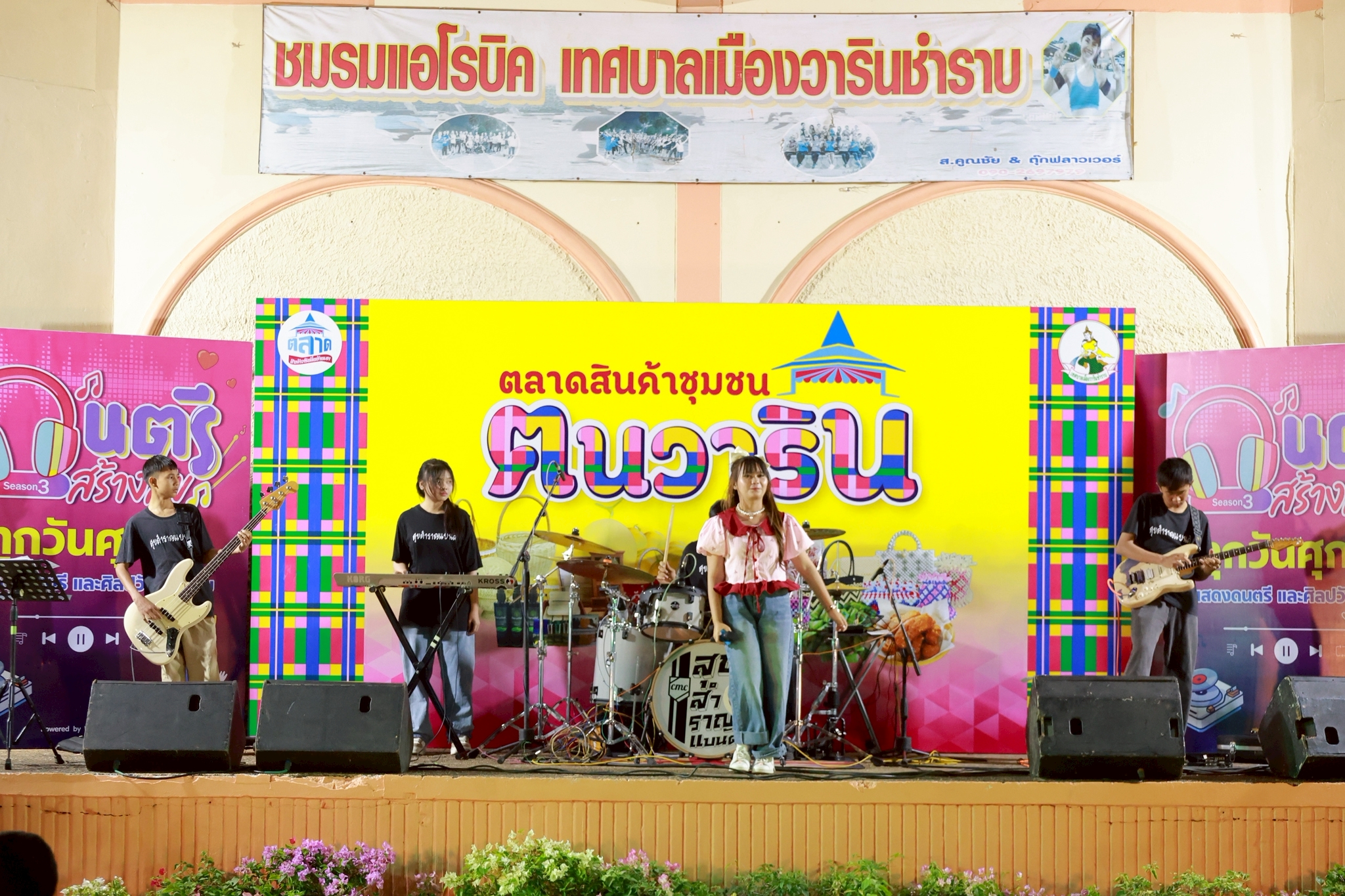 วันที่ 23 มกราคม 2569 เทศบาลเมืองวารินชำราบ จัดกิจกรรม "ดนตรีสร้างสุข" ซีซั่นที่ 3 ครั้งที่ 3 เพื่อพัฒนาสุขภาพกาย สุขภาพจิตใจ สร้างคุณภาพชีวิต รวมถึงเพื่อปลูกฝังให้ประชาชน มีใจรักและตระหนักถึงคุณค่าของศิลปะการดนตรี ความผ่อนคลาย พักผ่อนหย่อนใจ และสร้างสุขภาวะทางอารมณ์ และส่งเสริมให้เยาวชนและประชาชนมีพื้นที่ในการแสดงความสามารถทางด้านดนตรี และส่งเสริมสินค้าชุมชนที่เป็นมิตรต่อสิ่งแวดล้อมจากชุมชนในเขตเทศบาลเมืองวารินชำราบ ซึ่งบรรยากาศภายในงานแสดงดนตรี จากวงดนตรีจาก วงดนตรีสุขสำราญแบนด์ (โรงเรียนเทศบาลบ้านสุขสำราญ) ร่วมสร้างความคึกคักและความบันเทิงแก่ผู้ที่มาร่วมงานในครั้งนี้ พบกับกิจกรรม "ดนตรีสร้างสุข" ทุกเย็นวันศุกร์‘ ตั้งแต่เวลา 17.00 น. เป็นต้นไป ณ บริเวณถนนภายในทุ่งคำน้ำแซบ (หน้าศูนย์กีฬาฯ - ลานแอโรบิค)