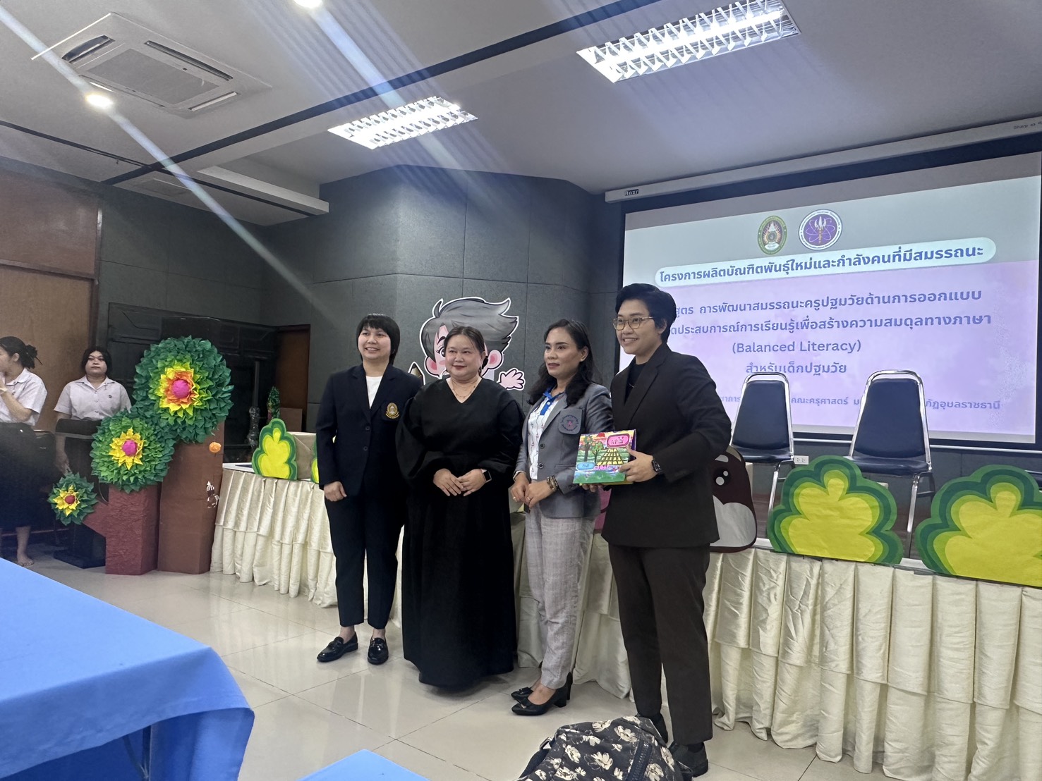 วันที่ 24 มกราคม 2569 ณ ห้องประชุมสัตตบงกช อาคารฝึกประสบการณ์วิชาชีพ คณะครุศาสตร์ มหาวิทยาลัยราชภัฏอุบลราชธานี ดร.ธเกียรติกมล ทองงอก ศึกษานิเทศก์ กองการศึกษา เทศบาลเมืองวารินชำราบ พร้อมด้วย ครู ระดับปฐมวัย โรงเรียนเทศบาลบ้านหนองตาโผ่น มิตรภาพที่ 5 ได้เข้าร่วม โครงการผลิตบัณฑิตพันธุ์ใหม่และกำลังคนที่มีสมรรถนะ หลักสูตร การพัฒนาสมรรถนะครูปฐมวัยด้านการออกแบบและการจัดประสบการณ์การเรียนรู้เพื่อสร้างความสมดุลทางภาษา (Balanced Literacy) สำหรับเด็กปฐมวัย รุ่นที่ 2 โดยมี รองศาสตราจารย์มาลี ไชยเสนา รองอธิการบดีมหาวิทยาลัยราชภัฏอุบลราชธานี ให้เกียรติเป็นประธานในพิธีเปิด พร้อมกันนี้ นางสาวอรุณวรรณ ยืนยาว หัวหน้าระดับปฐมวัย โรงเรียนเทศบาลบ้านหนองตาโผ่น มิตรภาพที่ 5 และครู ศูนย์พัฒนาเด็กเล็กเทศบาลเมืองวารินชำราบ ได้ร่วมเสวนาวิชาการ ในหัวข้อ “ประสบการณ์การจัดการเรียนรู้เพื่อสร้างความสมดุลทางภาษา (Balanced Literacy) โดยใช้วรรณกรรมเป็นฐาน” เพื่อเป็นการแลกเปลี่ยนประสบการณ์การจัดการเรียนรู้แก่ครูผู้เข้าร่วมโครงการ และนักศึกษาสาขาการศึกษาปฐมวัย
