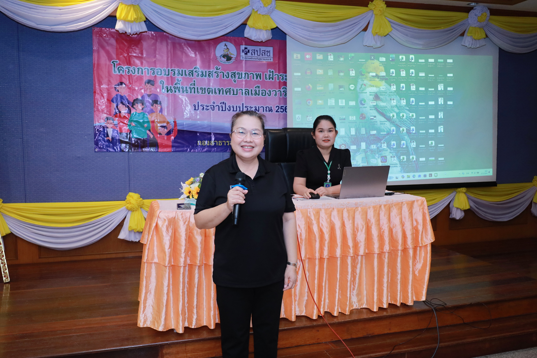 วันที่ 27 มกราคม 2568 เวลา 09.00 น. ณ ห้องประชุมประทุมเทพภักดี 1 งานศูนย์บริการสาธารณสุข กองสาธารณสุขและสิ่งแวดล้อม ได้จัดโครงการอบรมเสริมสร้างสุขภาพ เฝ้าระวังและป้องกันโรค ในพื้นที่เทศบาลเมืองวารินชำราบ แก่อาสาสมัครสาธารณสุข (อสม.) เทศบาลเมืองวารินชำราบ และประชาชนทั่วไป เพื่อเป็นการให้ความรู้ในด้านการสาธารณสุข และทบทวนความรู้ด้านการส่งเสริมสุขภาพแก่คนในชุมชน รวมถึงการติดตามงานของ อสม. แต่ละชุมชน ในรอบเดือนที่ผ่านมา สำหรับการอบรมในครั้งนี้เป็นการให้ความรู้ในเรื่องการคัดกรองผู้สูงอายุ 9 ด้าน และการรายงานในสมาร์ท อสม. โดยได้รับเกียรติจากนางยุวดี ส่องแสง ตำแหน่งนักวิชาการสาธารณสุขชำนาญการ มาเป็นวิทยากรให้ความรู้ในครั้งนี้