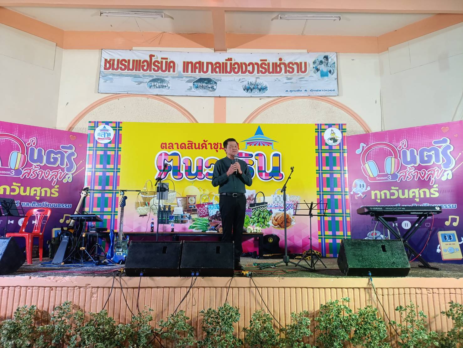วันที่ 30 มกราคม 2569 เทศบาลเมืองวารินชำราบ จัดกิจกรรม "ดนตรีสร้างสุข" ซีซั่นที่ 3 ครั้งที่ 4 เพื่อพัฒนาสุขภาพกาย สุขภาพจิตใจ สร้างคุณภาพชีวิต รวมถึงเพื่อปลูกฝังให้ประชาชน มีใจรักและตระหนักถึงคุณค่าของศิลปะการดนตรี ความผ่อนคลาย พักผ่อนหย่อนใจ และสร้างสุขภาวะทางอารมณ์ และส่งเสริมให้เยาวชนและประชาชนมีพื้นที่ในการแสดงความสามารถทางด้านดนตรี และส่งเสริมสินค้าชุมชนที่เป็นมิตรต่อสิ่งแวดล้อมจากชุมชนในเขตเทศบาลเมืองวารินชำราบ ซึ่งบรรยากาศภายในงานแสดงดนตรี จากต้น ลำมูล (นายอุดมศักดิ์ นวลศิริ นายอำเภอวารินชำราบ) ร่วมสร้างความคึกคักและความบันเทิงแก่ผู้ที่มาร่วมงานในครั้งนี้ พบกับกิจกรรม "ดนตรีสร้างสุข" ทุกเย็นวันศุกร์‘ ตั้งแต่เวลา 17.00 น. เป็นต้นไป ณ บริเวณถนนภายในทุ่งคำน้ำแซบ (หน้าศูนย์กีฬาฯ - ลานแอโรบิค)