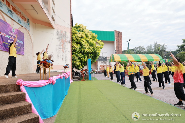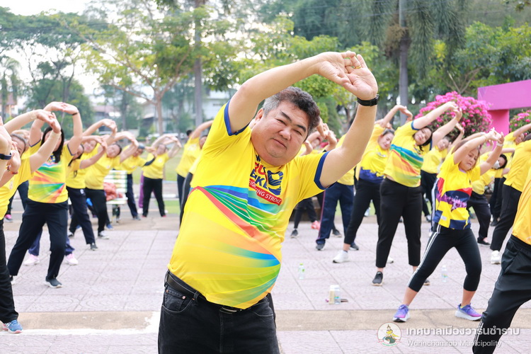 วันที่ 25 ธันวาคม 2567 เวลา 07.00 น. นายจีระชัย ไกรกังวาร นายกเทศมนตรี ได้มอบหมายให้ นายณรงชัย ประสิทธิ์ภูริปรีชา รองนายกเทศมนตรี พร้อมด้วย นางพฤกษา ตั้งกิจวนิชกุล ผู้อำนวยการกองสาธารณสุขและสิ่งแวดล้อม ,อาสาสมัครสาธารณสุข (อสม.) เทศบาลเมืองวารินชำราบ และประชาชนทั่วไป ร่วมกิจกรรมโครงการรณรงค์ชาววารินร่วมใจ ห่างไกลโรคไม่ติดต่อ (NCDs) ประจำปีงบประมาณ 2568 โดยมีนายแพทย์ธีระพงษ์ แก้วภมร นายแพทย์สาธารณสุขจังหวัดอุบลราชธานี เป็นประธานในพิธี เพื่อขับเคลื่อนการส่งเสริมการออกกำลังกาย เพื่อสุขภาพ ภายใต้วิถีชีวิตของประชาชนส่งเสริมการมีสุขภาพที่ดี และเน้นการมีส่วนร่วมกับสังคม และช่วยสร้างกระแสในการออกกำลังกายส่งเสริมสุขภาพป้องกันโรค (NCDs) ณ ลานแอโรบิคสนามทุ่งคำน้ำแซบ เทศบาลเมืองวารินชำราบ