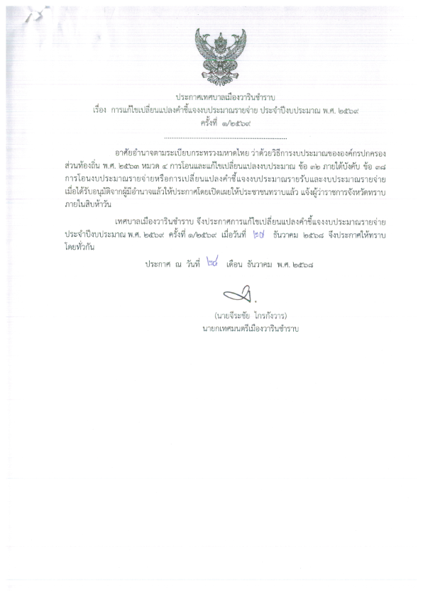 หน้าหลัก งบประมาณ: แผนการใช้จ่ายงบประมาณ การแก้ไขเปลี่ยนแปลงคำชี้แจงงบประมาณรายจ่าย ประจำปีงบประมาณ พ.ศ.2569 ครั้งที่ 1/2569