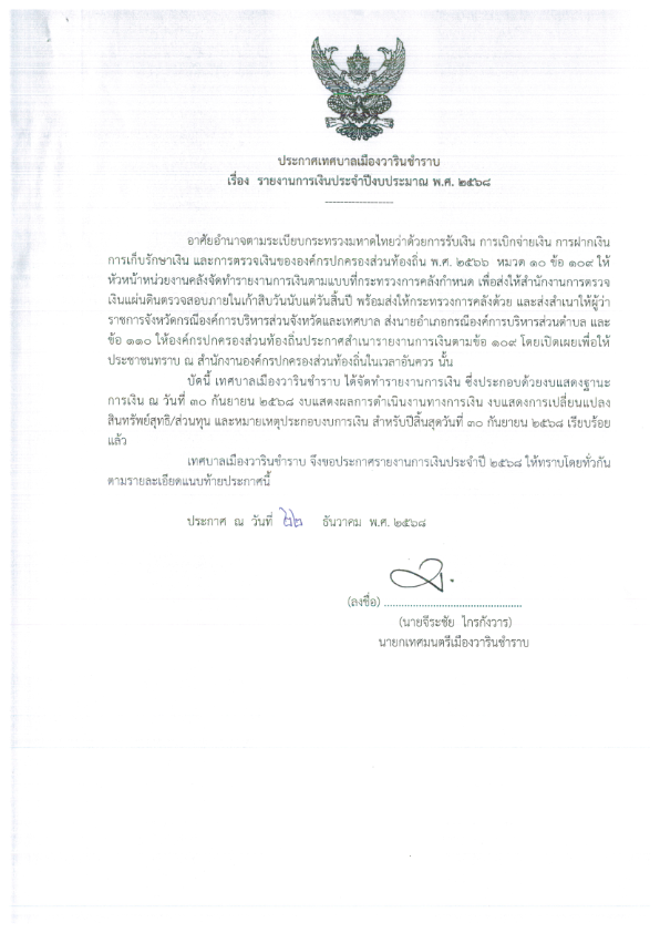 หน้าหลัก งบประมาณ: งบแสดงสถานะการเงิน รายงานการเงินประจำปีงบประมาณ พ.ศ.2568