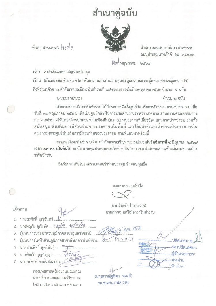 ส่งคำสั่งและขอเชิญร่วมประชุม