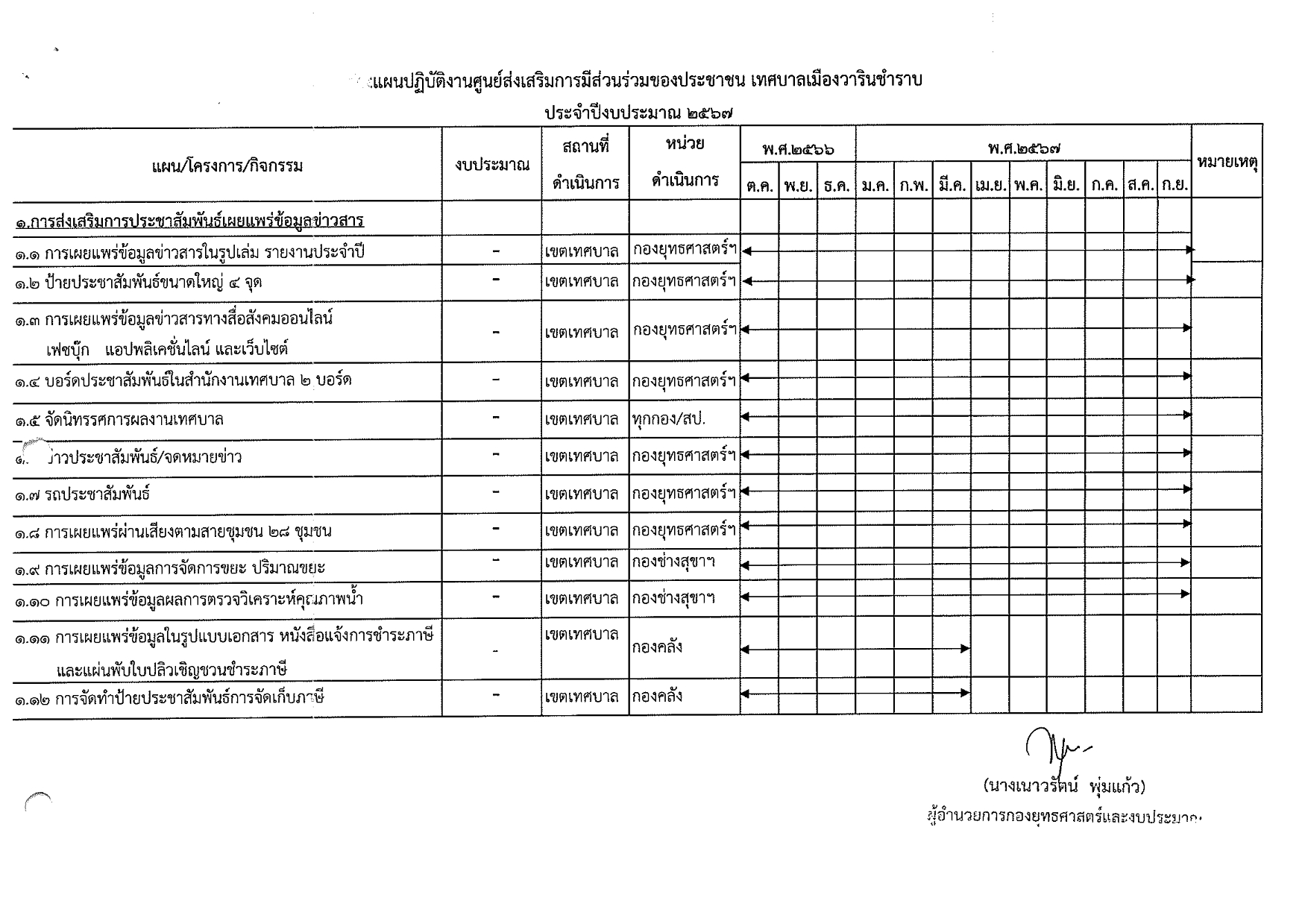 แผนปฏิบัติการงานศูนย์ส่งเสริมการมีส่วนร่วมของประชาชน เทศบาลเมืองวารินชำราบ ประจำปี 2567