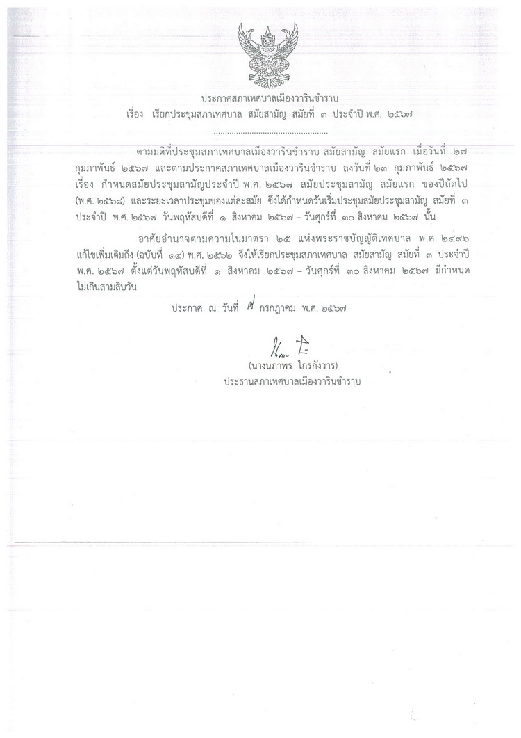 8 กรกฎาคม 2567 | สำนักปลัดเทศบาล