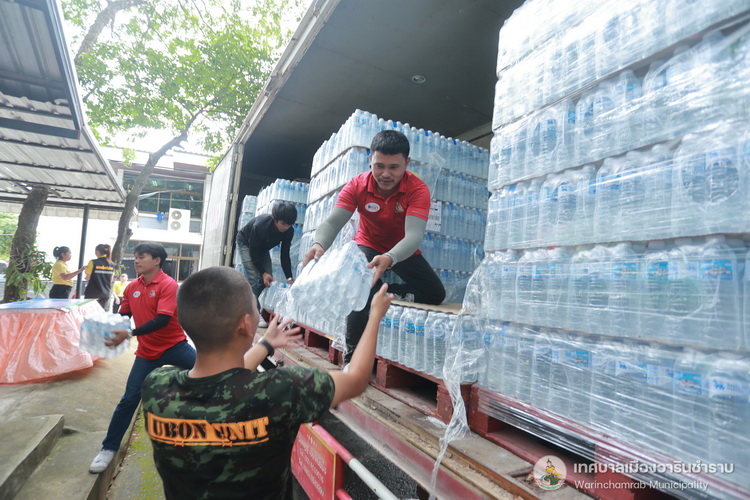 วันที่ 25 กรกฎาคม 2568 เวลา 14.00 น. สมาคมสันนิบาตเทศบาลจังหวัดอุบลราชธานี โดยมีนายจีระชัย ไกรกังวาร นายกเทศมนตรีเมืองวารินชำราบ ในฐานะประธานสันนิบาต เทศบาลจังหวัดอุบลราชธานี พร้อมด้วยนายสมาน ทวีศรี นายกเทศมนตรีตำบลห้วยเรือ และหัวหน้าส่วนราชการมอบน้ำดื่ม จำนวน 2,222 แพ็ค เพื่อสนับสนุนการปฏิบัติหน้าที่ของเจ้าหน้าที่ทหาร และช่วยบรรเทาความเดือดร้อนของพี่น้องประชาชนที่ได้รับผลกระทบจากสถานการณ์ชายแดน ณ กองพันทหารราบที่ 2 กรมทหารราบที่ 6