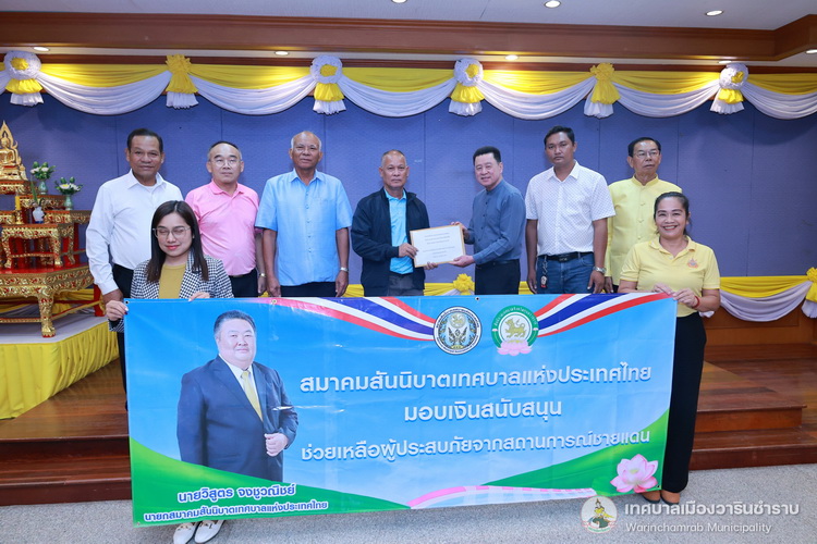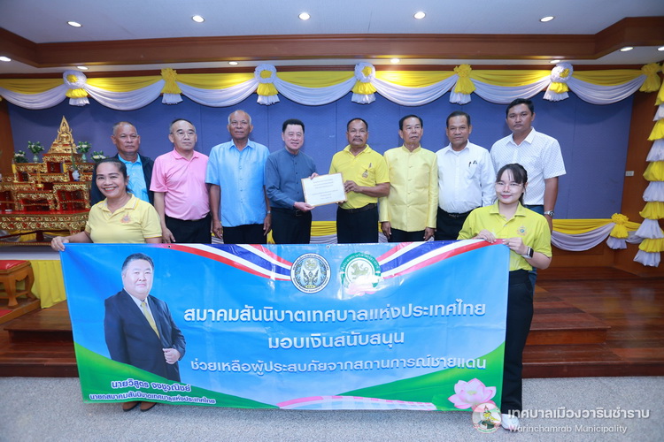 วันที่ 1 สิงหาคม 2568 เวลา 10.00 น. นายจีระชัย ไกรกังวาร นายกเทศมนตรีเมืองวารินชำราบ ในฐานะประธานสันนิบาต เทศบาลจังหวัดอุบลราชธานี มอบเงินสนับสนุนช่วยเหลือเทศบาลสมาชิกของสันนิบาตเทศบาลจังหวัดอุบลราชธานี ตามที่สมาคมสันนิบาตแห่งประเทศไทย นำโดยนายวิสูตร จงชูวณิชย์ นายกสมาคมสันนิบาตเทศบาลแห่งประเทศไทย มอบเงินช่วยเหลือ เมือวันที่ วันที่ 30 กรกฎาคม 2568 ที่ได้รับผลกระทบ จำนวน 7 แห่ง ได้แก่ เทศบาลตำบลน้ำยืน, เทศบาลตำบลสีวิเชียร ,เทศบาลตำบลนาจะหลวย,เทศบาลตำบลภูจองนายอย,เทศบาลตำบลตาเกา และเทศบาลตำบลขี้เหล็ก โดยมีพร้อมด้วยนายทรงกรด ไกรกังวาร นายกเทศมนตรีตำบลแสนสุข และสมาชิกสันนิบาตจังหวัดอุบลราชธานี และหัวหน้าส่วนราชการ ร่วมเป็นสักขีพยาน ณ ห้องประชุมประทุมเทพภักดี 1 เทศบาลเมืองวารินชำราบ