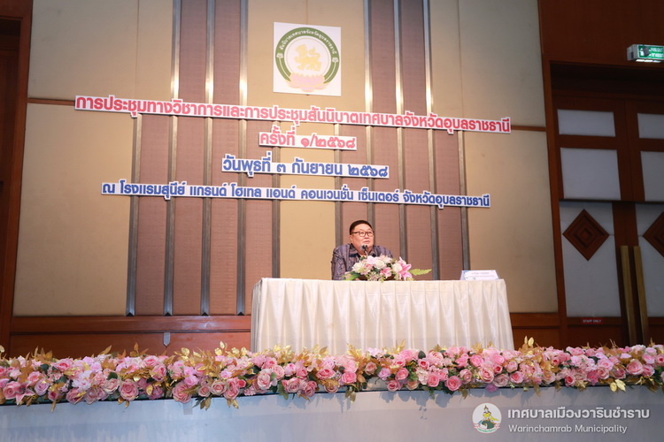 วันที่ 3 กันยายน 2568 เวลา 08.00 น. ณ โรงแรมสุนีย์แกรน์ อุบลราชธานี สมาคมสันนิบาตเทศบาลจังหวัดอุบลราชธานี โดยมีนายจีระชัย ไกรกังวาร นายกเทศมนตรีเมืองวารินชำราบ ในฐานะประธานสันนิบาต เทศบาลจังหวัดอุบลราชธานี ได้จัดประชุมวิชาการและประชุมสันนิบาตเทศบาลจังหวัดอุบลราชธานี ครั้งที่ 1/2568 โดยได้รับเกียรติจากนายวิสูตร จงชูวณิชย์ นายกเทศมนตรีตำบลบรบือ นายกสมาคมสันนิบาตแห่งประเทศไทย พบปะสมาชิกสันนิบาตเทศบาลจังหวัดอุบลราชธานีและบรรยายพิเศษเกี่ยวกับความคืบหน้าการดำเนินงานของสันนิบาตแห่งประเทศไทย และได้รับเกียรติจากนายฉัตรบูล ตันเรือง ผู้เชียวชาญด้านยุทธศาสตร์ด้านการงบประมาณ ,นางสาวเกษมนีย์ นาจาน คลังจังหวัดอุบลราชธานี และนางสุนิษา เขมปริยากร ท้องถิ่นจังหวัดอุบลราชธานี มาเป็นวิทยากรบรรยายให้ความรู้ โดยมีนายกเทศมนตรี ปลัดเทศบาล และตัวแทนจากเทศบาลต่างๆในจังหวัดอุบลราชธานีเข้าร่วมประชุมกันอย่างพร้อมเพรียง