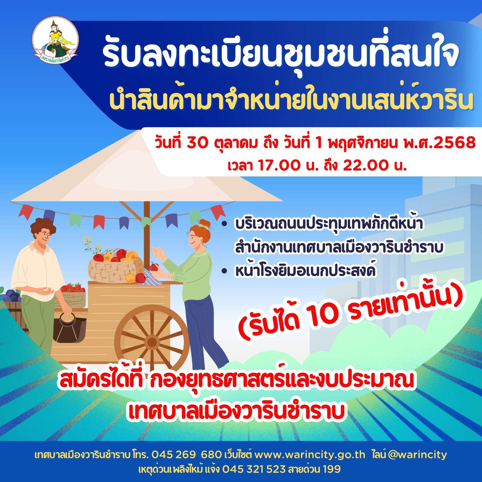 สมัครได้ที่ : กองยุทธศาสตร์และงบประมาณเทศบาลเมืองวารินชำราบ