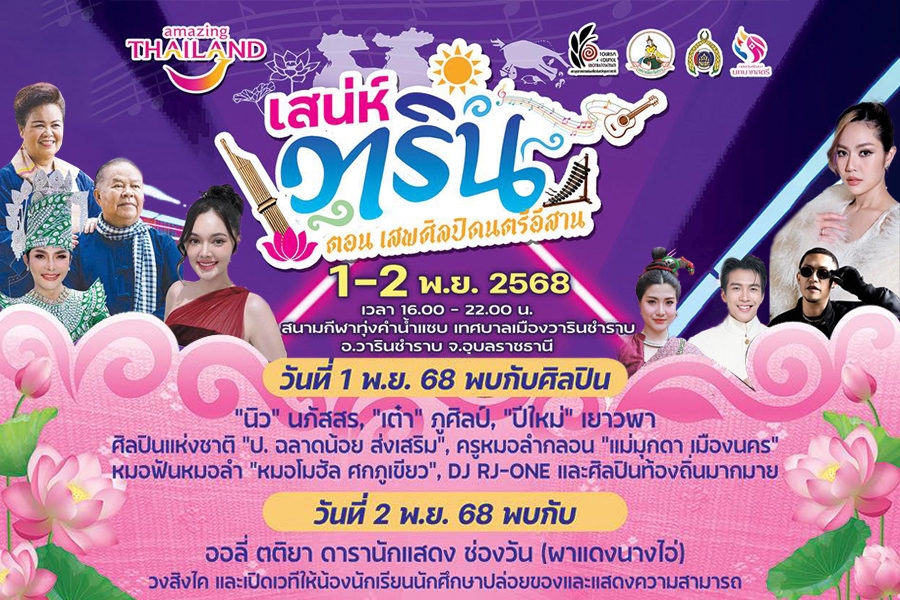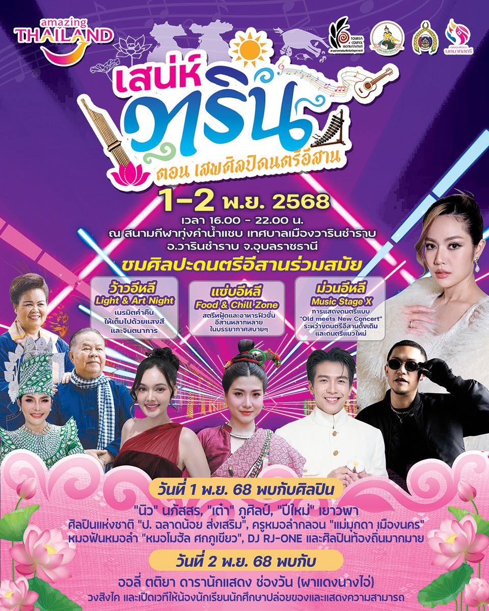 หน้าหลัก   ประชาสัมพันธ์ ขอเชิญร่วมงาน"เสน่ห์วาริน" ตอน เสพศิลปินดนตรีอีสาน 1-2 พฤศจิกายน 2568