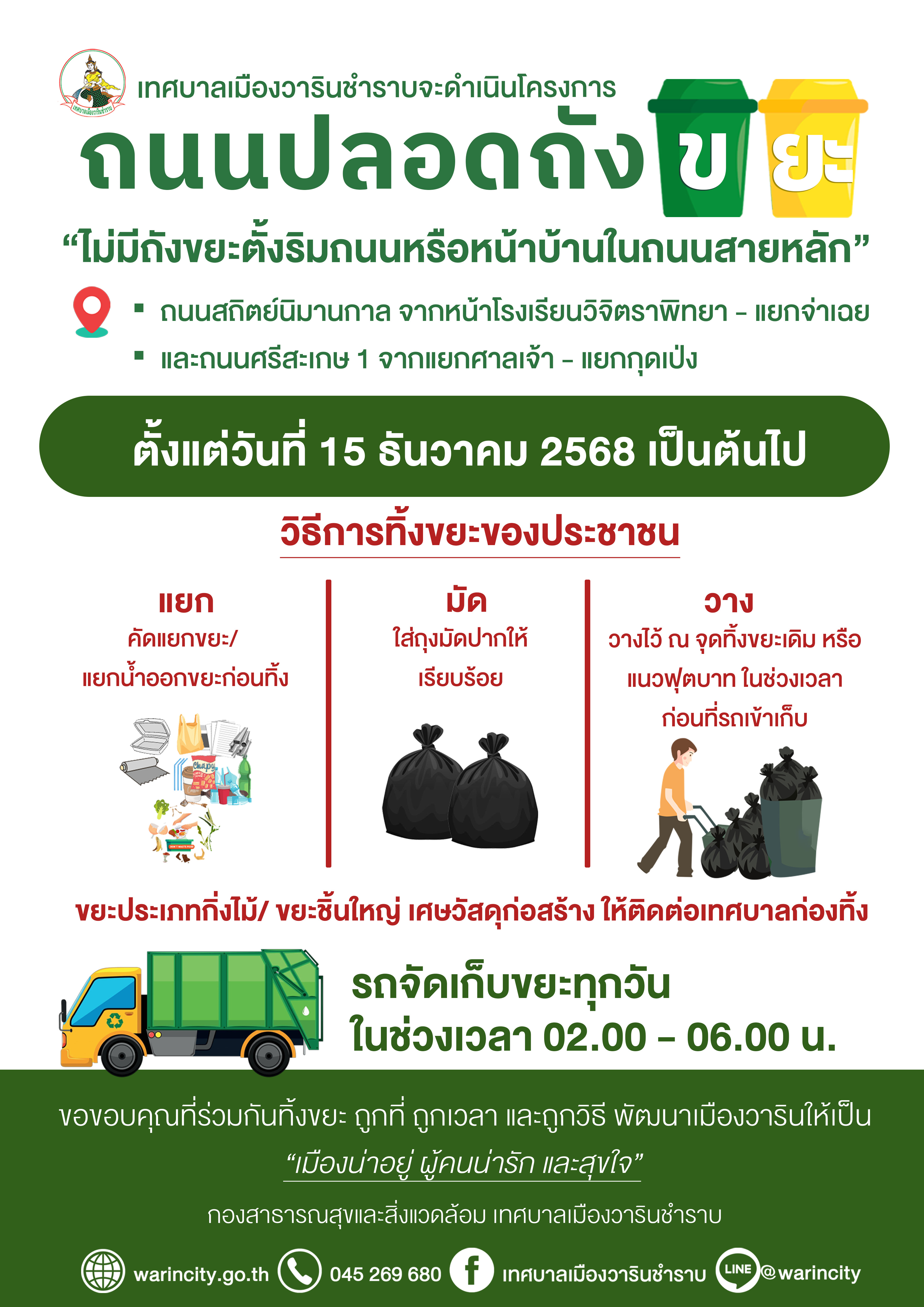 โครงการถนนปลอดถังขยะ "ไม่มีถังขยะตั้งริมถนนหรือหน้าบ้านในถนนสายหลัก"