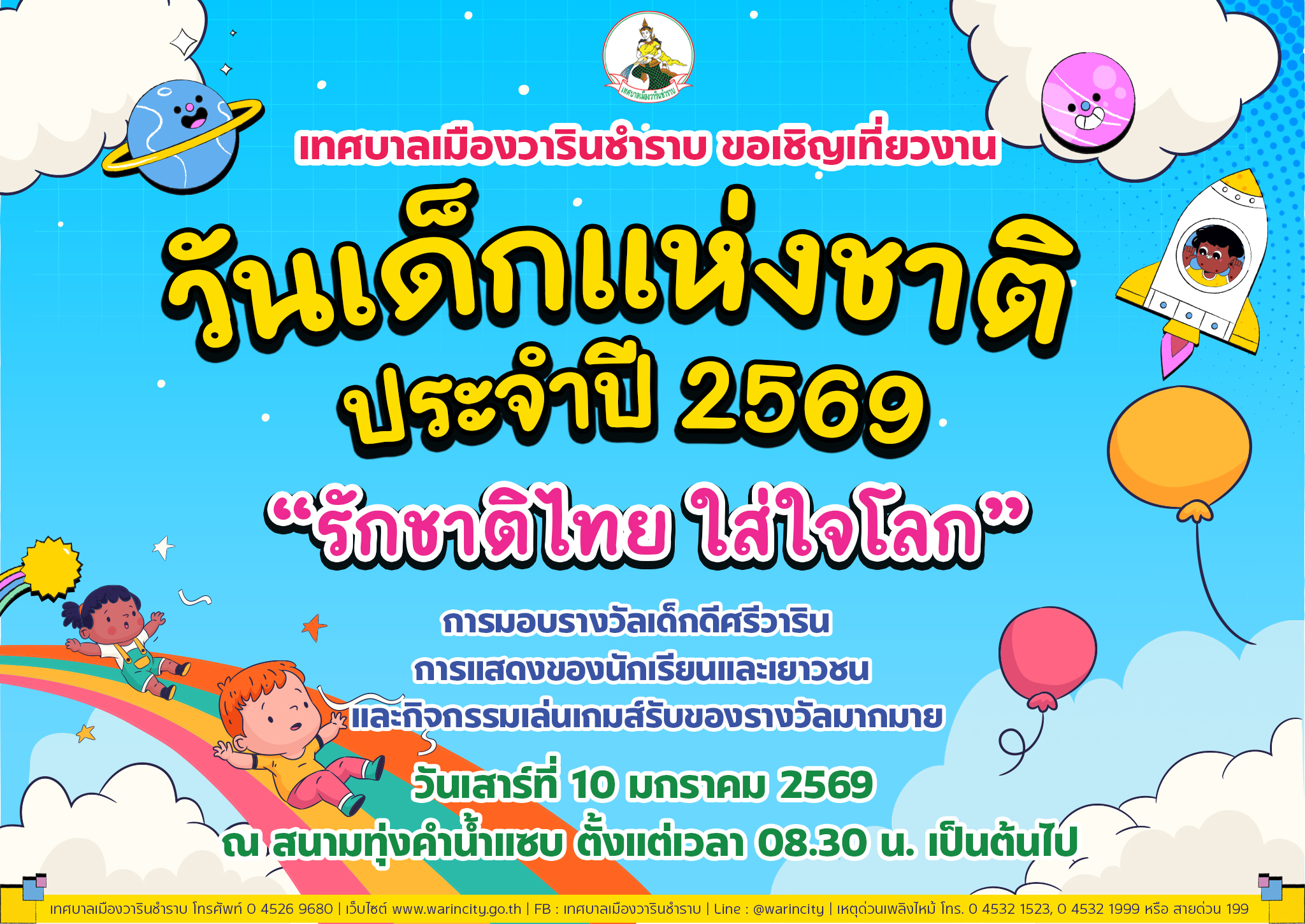 หน้าหลัก   ประชาสัมพันธ์ เทศบาลเมืองวารินชำราบ ขอเชิญเที่ยวงานวันเด็กแห่งชาติ ประจำปี 2569