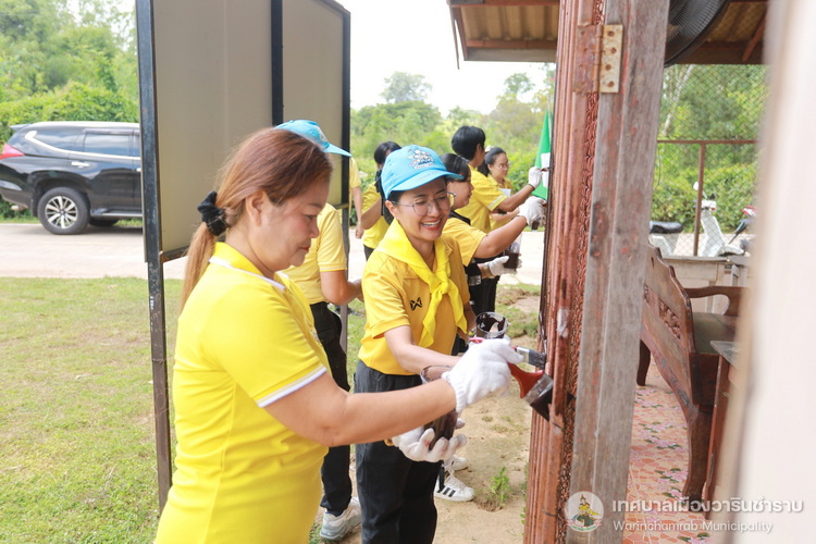 วันที่ 12 สิงหาคม 2568 เวลา 10.00 น. ณ ศาลาชุมชนดอนงิ้ว ชุมชนดอนงิ้ว นายจีระชัย ไกรกังวาร นายกเทศมนตรี พร้อมด้วยคณะผู้บริหาร สมาชิกสภาเทศบาล หัวหน้าส่วนการงาน ร่วมกับสมาชิกอาสาสมัครป้องกันภัยฝ่ายพลเรือน (อปพร.) และชาวชุมชนดอนงิ้ว เทศบาลเมืองวารินชำราบ ร่วมกันทำความดี ปลูกต้นไม้ ทำความสะอาด และทาสีศาลาชุมชนดอนงิ้ว เพื่อให้มีความสะอาด สวยงาม ร่มรื่น เป็นแหล่งท่องเที่ยว และสถานที่จัดกิจกรรมทางศาสนาของชุมชน และประชาชนชาววารินชำราบ ตามโครงการหมู่บ้านศีลธรรม นำไปสู่หมู่บ้านยั่งยืน (Sustainable Village) เพื่อเฉลิมพระเกียรติสมเด็จพระเจ้าลูกเธอ เจ้าฟ้าสิริวัณณวรี นารีรัตนราชกัญญา ประจำปี 2568 ครั้งที่ 3